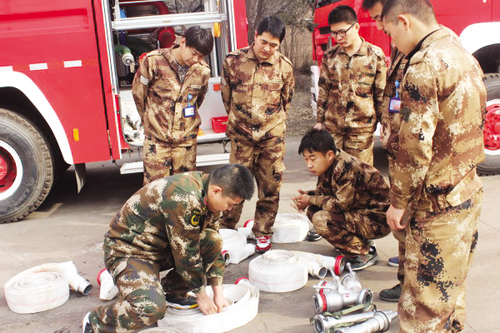 3月17日,河曲消防大隊派員深入樓子營鎮(zhèn)神華、神東發(fā)電廠,指導(dǎo)企業(yè)消防隊員進(jìn)行消防訓(xùn)練。圖為河曲消防大隊消防員為企業(yè)消防隊員做消防操作演示。(樊彥勛 攝)