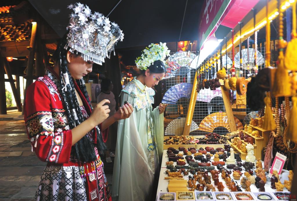 6月1日,游客在忻州古城挑選工藝品,感受古城獨特的夜經(jīng)濟魅力。(