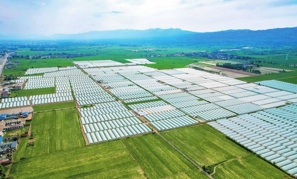代縣上磨坊鄉(xiāng)大力發(fā)展麒麟西瓜種植產(chǎn)業(yè),促進農(nóng)民增收致富。圖為麒麟西瓜大棚形成規(guī)模。(記者 范 琛攝)