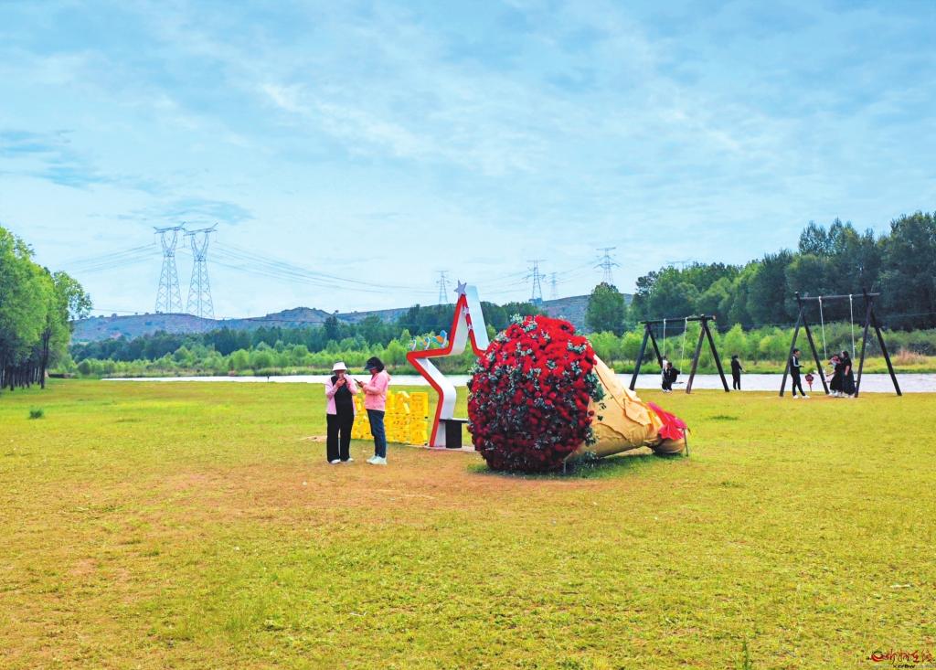 夏季熱浪漫卷時(shí),靜樂汾河川國(guó)家濕地公園卻藏著別樣清涼。楊家崖段新落成“網(wǎng)紅打卡點(diǎn)”引來游人紛紛駐足——綠意盎然的草坪上,巨型玫瑰花束在陽光下“灼灼盛放”;以汾河為背景,秋千輕輕蕩漾,人們恰似生態(tài)畫卷中最靈動(dòng)的筆觸,為這景致添了幾分鮮活意趣。年輕情侶在花束前合影,孩童嬉戲著在草坪上相互追逐……目前,“打卡”熱潮仍在持續(xù)升溫。 (記者 趙丹琦攝)