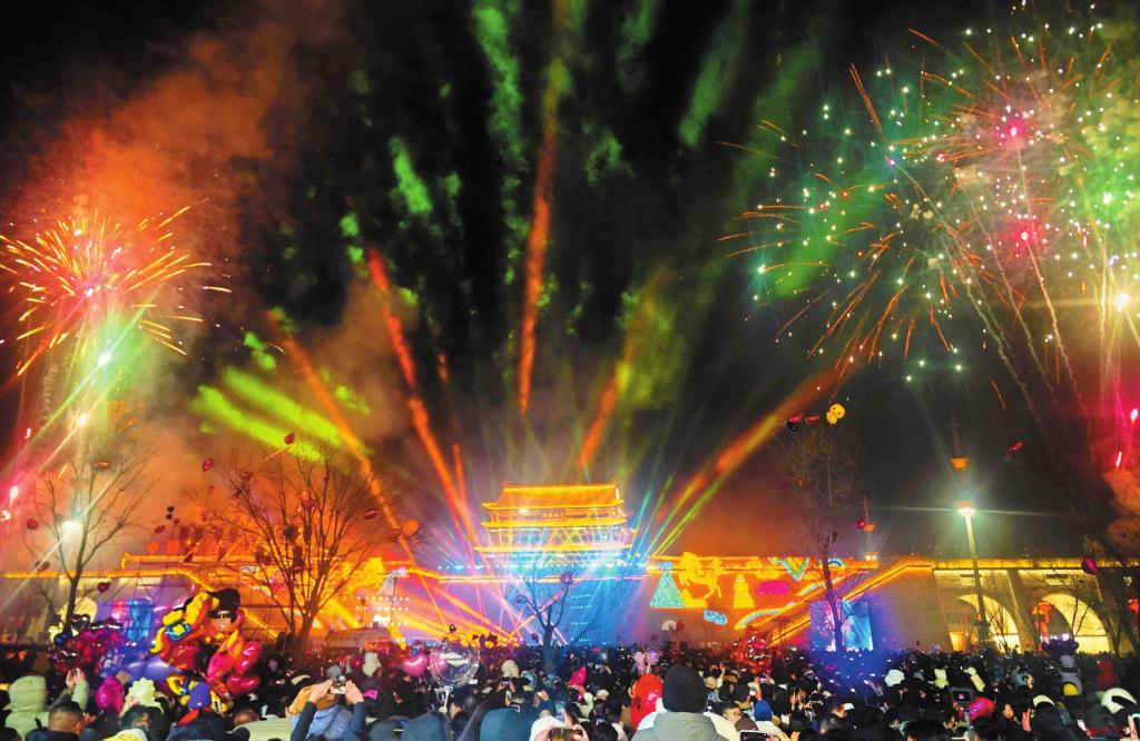 2026年元旦之夜,忻州古城跨年活動高潮迭起,精彩紛呈。當新年的鐘聲敲響,萬千心愿氣球同時升空,煙花與星辰共舞,歌聲飛揚,光影如瀑,八方游客一起迎接新年到來。(王林俊攝)