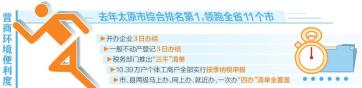 近日,記者從太原市政府新聞辦召開的新聞發(fā)布會(huì)上獲悉,山西省營商環(huán)境整體評(píng)估報(bào)告顯示,去年太原市營商環(huán)境便利度綜合排名第1,領(lǐng)跑全省11個(gè)市;在國家發(fā)改委組織的對(duì)包括直轄市、計(jì)劃單列市、省會(huì)城市在內(nèi)的41座城市進(jìn)行的營商環(huán)境評(píng)價(jià)中,太原市營商環(huán)境便利度獲評(píng)優(yōu)良。