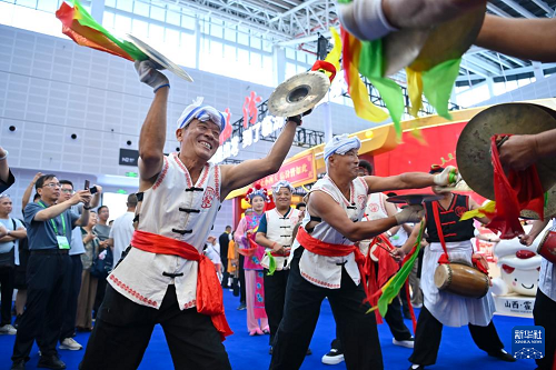 8月21日,演員在第七屆山西文化產(chǎn)業(yè)博覽交易會上表演。(新華社記者 楊晨光 攝)