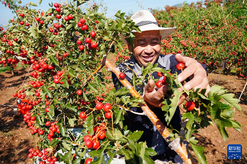 近日,山東省新泰市山楂陸續(xù)成熟,當(dāng)?shù)毓r(nóng)忙著進行山楂收獲、運輸、存儲等工作。近年來,新泰市因地制宜發(fā)展山楂產(chǎn)業(yè),當(dāng)?shù)厣介N植面積達4.7萬余畝,山楂產(chǎn)業(yè)已成為帶動當(dāng)?shù)厝罕娫鍪罩赂坏奶厣a(chǎn)業(yè)。