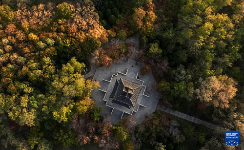 這是10月28日在銀川市海寶公園拍攝的秋景(無(wú)人機(jī)照片)。(新華社記者 馮開(kāi)華 攝)
