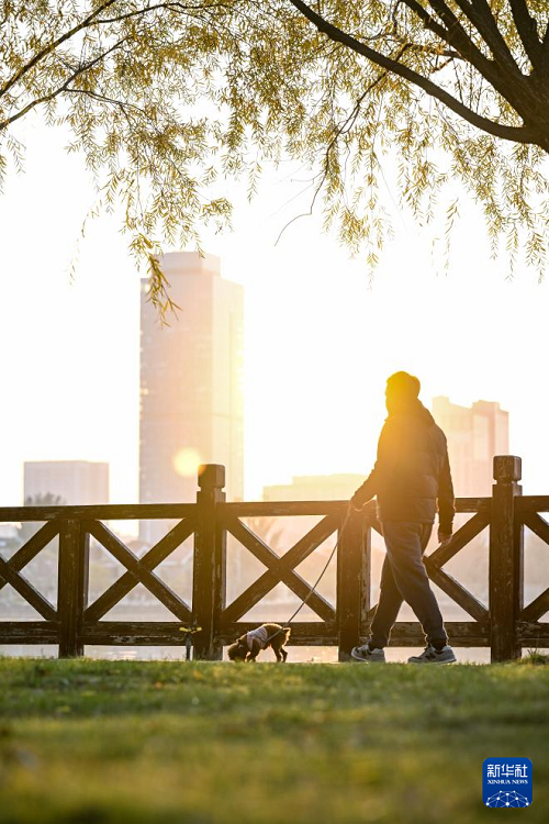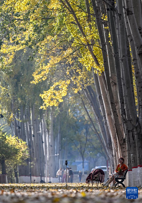10月28日,市民在銀川市海寶公園休閑、散步。(新華社記者 馮開(kāi)華 攝)