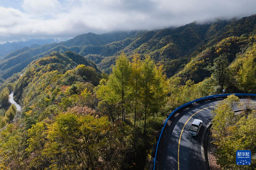 10月30日拍攝的鎮(zhèn)坪縣境內(nèi)化龍山秋日景色(無(wú)人機(jī)照片)。(新華社記者 邵瑞 攝)