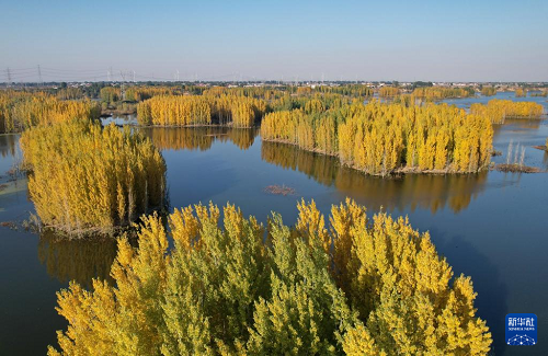 初冬時(shí)節(jié),在河北省邢臺(tái)市隆堯縣亦城村泜河沿岸,樹(shù)葉金黃,與水面、河岸相映襯,勾勒出一幅美麗和諧的自然畫(huà)卷。