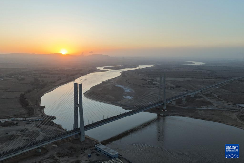 晨曦初綻,金色朝霞映照包銀高鐵烏海黃河特大橋,鋼鐵巨龍靜臥母親河之上。當(dāng)日,包銀高鐵全線貫通運營。