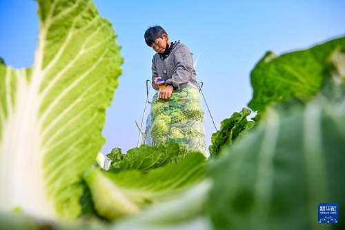 1月5日,河南省商丘市夏邑縣會亭鎮(zhèn)西街東村農民在收獲大白菜。(新華社發(fā) 王高超 攝)