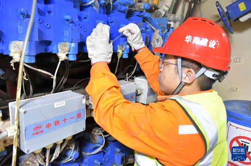 1月7日,工作人員在施工現(xiàn)場(chǎng)的控制室里調(diào)控機(jī)械設(shè)備。(新華社記者 盧漢欣 攝)