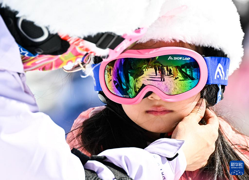 1月11日,家長在江蘇省句容市寶華山滑雪場(chǎng)給小朋友整理裝備。(新華社記者 季春鵬 攝)