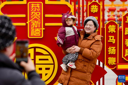 2月3日,游客在寧夏固原市西吉縣年貨大集現(xiàn)場(chǎng)留影。(新華社記者 楊植森 攝)