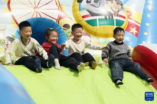 2月13日,小朋友在河南省洛陽市汝陽縣劉伶廣場(chǎng)玩耍。(新華社發(fā) 康紅軍 攝)