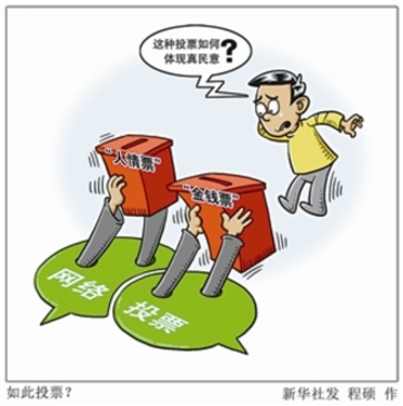 從紅遍大江南北的超女、快男開始,各種評選活動日益增多,最萌寶貝、最美司機(jī)、最美景點(diǎn)等等,你方唱罷我登場,好不熱鬧。投票手段也不斷演進(jìn),手機(jī)短信、網(wǎng)絡(luò)海選、朋友圈投票等,花樣翻新、不一而足。投票方式雖與時(shí)俱進(jìn),衡量投票結(jié)果的標(biāo)準(zhǔn)卻未變,票數(shù)多少固化為讓各方“信服”的指標(biāo),如何獲得票數(shù)則一概不論。