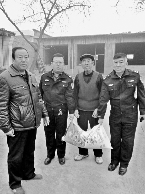 近年來,大隊(duì)把扶貧工作當(dāng)作一項(xiàng)政治任務(wù)抓在手上,為了更好地精準(zhǔn)扶貧,按計(jì)劃力爭(zhēng)提前完成扶貧攻堅(jiān)任務(wù)。2015年,李晉生擔(dān)任了原平市南白鄉(xiāng)尚義村的第一書記,負(fù)責(zé)該村的幫扶工作。南白鄉(xiāng)尚義村是原平市的重點(diǎn)貧困村,也是交警大隊(duì)幫扶村,全村204人,貧困人口占80%。當(dāng)年12月17日,他自籌2000多元,購買了米、面、糧、油,與大隊(duì)的4位民警來到了南白鄉(xiāng)尚義村走訪慰問特困家庭。在全市開展精準(zhǔn)扶貧的攻堅(jiān)階段,為了讓特困家庭度過溫暖的冬季,交警大隊(duì)民警進(jìn)村入戶共慰問五保戶、特困戶8戶,為他們送去了面粉、大米和食用油。同時(shí),大隊(duì)長(zhǎng)還看望了90歲高齡的抗戰(zhàn)老兵趙書良,1925年出生的趙書良老人,17歲時(shí)就參軍,在抗日戰(zhàn)爭(zhēng)中多次立功授獎(jiǎng)。當(dāng)老人雙手接過慰問金后,激動(dòng)地說:“還是共產(chǎn)黨好,人民警察和人民真是心連心?。 ?