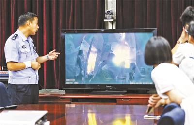 民警根據(jù)當時拍攝的畫面講述事發(fā)經(jīng)過 攝影/本報記者 汪震龍