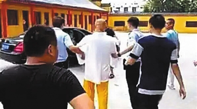 這是安徽蚌埠警方實(shí)施的一次抓捕行動(dòng)。被帶走時(shí),釋廣聞身著白色寬松上衣、黃色僧袍褲子,沒有任何反抗,表情平靜。