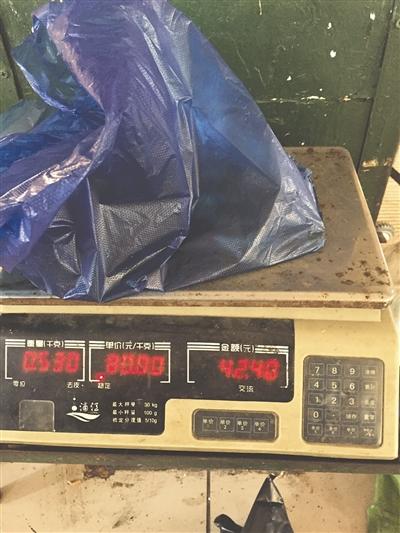 裝袋、充氧氣、過(guò)秤,整個(gè)過(guò)程,記者并沒(méi)有發(fā)現(xiàn)什么異樣。“60元,給你刨了兩塊四的皮哦?!崩习鍖⑽r遞給記者。
