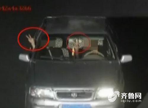 司機(jī)面對(duì)攝像頭比剪刀手