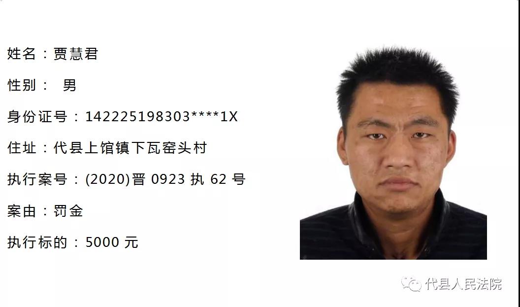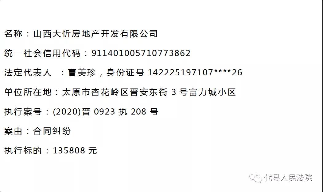 代縣法院公布多名失信被執(zhí)行人