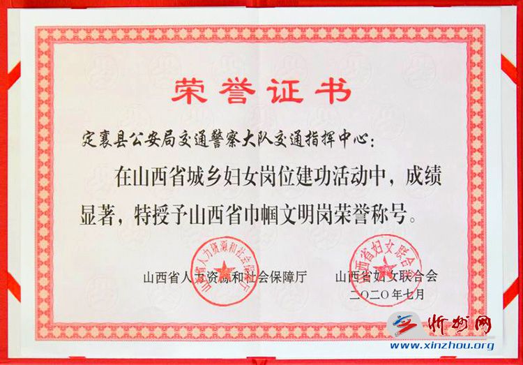 忻州網(wǎng)訊(通訊員:劉瑞晉)近日,定襄縣公安局交警大隊(duì)交通指揮中心被山西省人力資源和社會(huì)保障廳、山西省婦女聯(lián)合會(huì)授予“山西省巾幗文明崗”榮譽(yù)稱號(hào)。定襄交警大隊(duì)把爭(zhēng)創(chuàng)“巾幗文明崗”作為開展?fàn)巸?yōu)創(chuàng)先活動(dòng)的一項(xiàng)重要舉措,大隊(duì)女民警、女輔警立足崗位、愛崗敬業(yè)、熱情服務(wù),發(fā)揮了重要作用,為推動(dòng)定襄公安交通管理工作做出了積極貢獻(xiàn)。