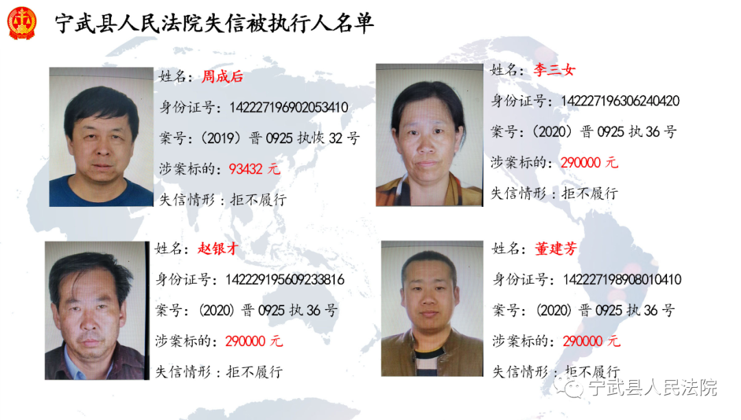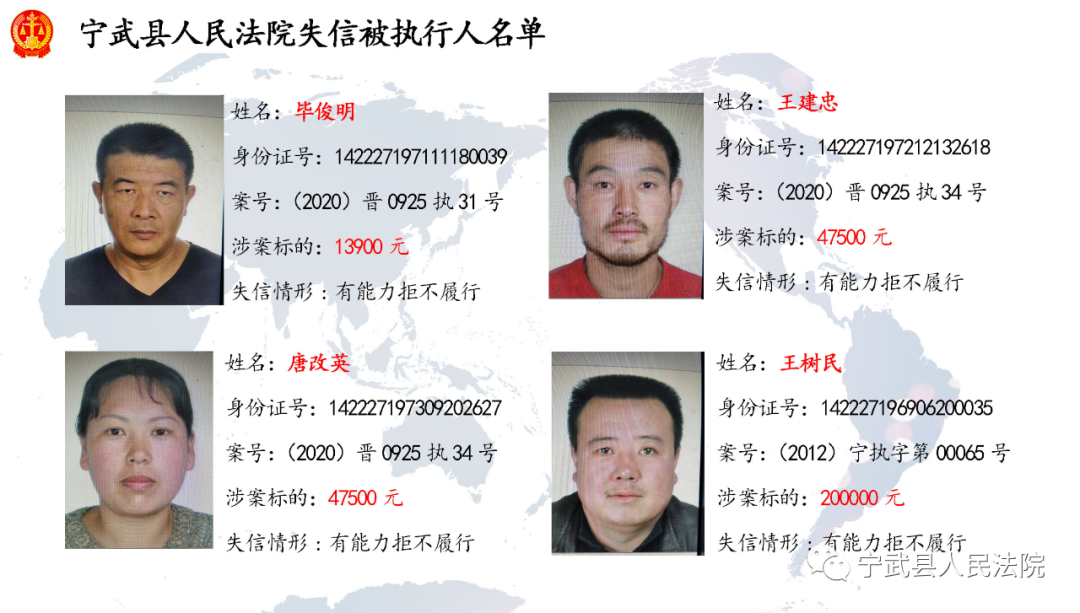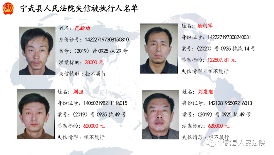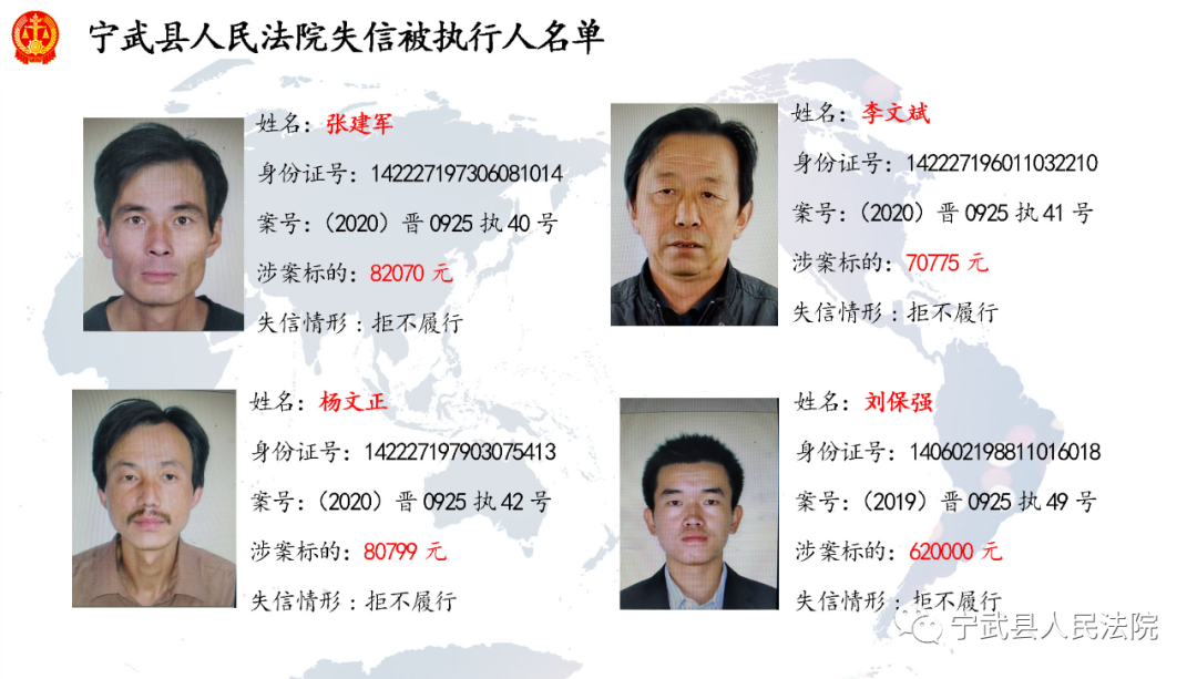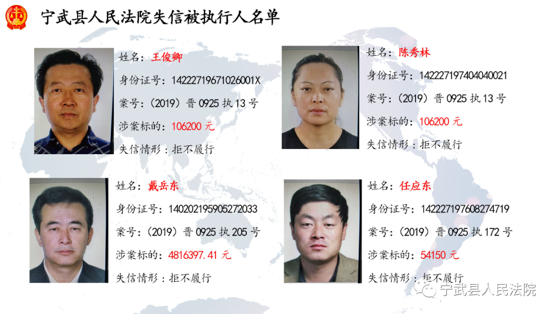 上述人員(公司)納入失信被執(zhí)行人名單庫(kù)(可通過(guò)中國(guó)執(zhí)行信息公開網(wǎng)查看),同時(shí),向公安、工商、房管、高鐵、民航等部門以及銀行等金融機(jī)構(gòu)和招標(biāo)單位予以通報(bào),請(qǐng)相關(guān)部門對(duì)其在準(zhǔn)入資格、任職資格、高消費(fèi)、出境等方面給予限制,并請(qǐng)全社會(huì)對(duì)其進(jìn)行監(jiān)督。