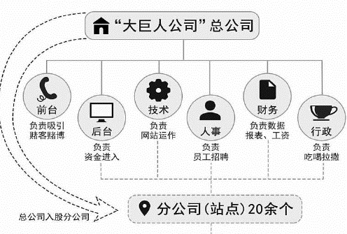 2016年初,因國內(nèi)對網(wǎng)絡(luò)賭博持續(xù)打擊整治,黃某法將公司轉(zhuǎn)移到柬埔寨,命名為“大巨人公司”,并借助國外寬松的博彩政策逐步發(fā)展壯大,成為由4個主網(wǎng)站加25個子網(wǎng)站組成的龐大賭博集團(tuán)??紤]到運(yùn)營成本問題,2018年,他又將部分站點(diǎn)和業(yè)務(wù)遷至菲律賓。