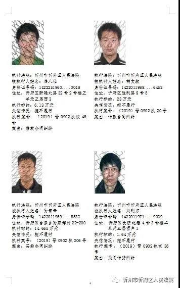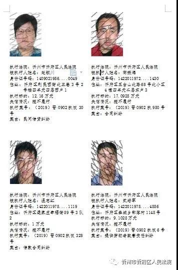 近日,忻府區(qū)法院公布多名失信被執(zhí)行人