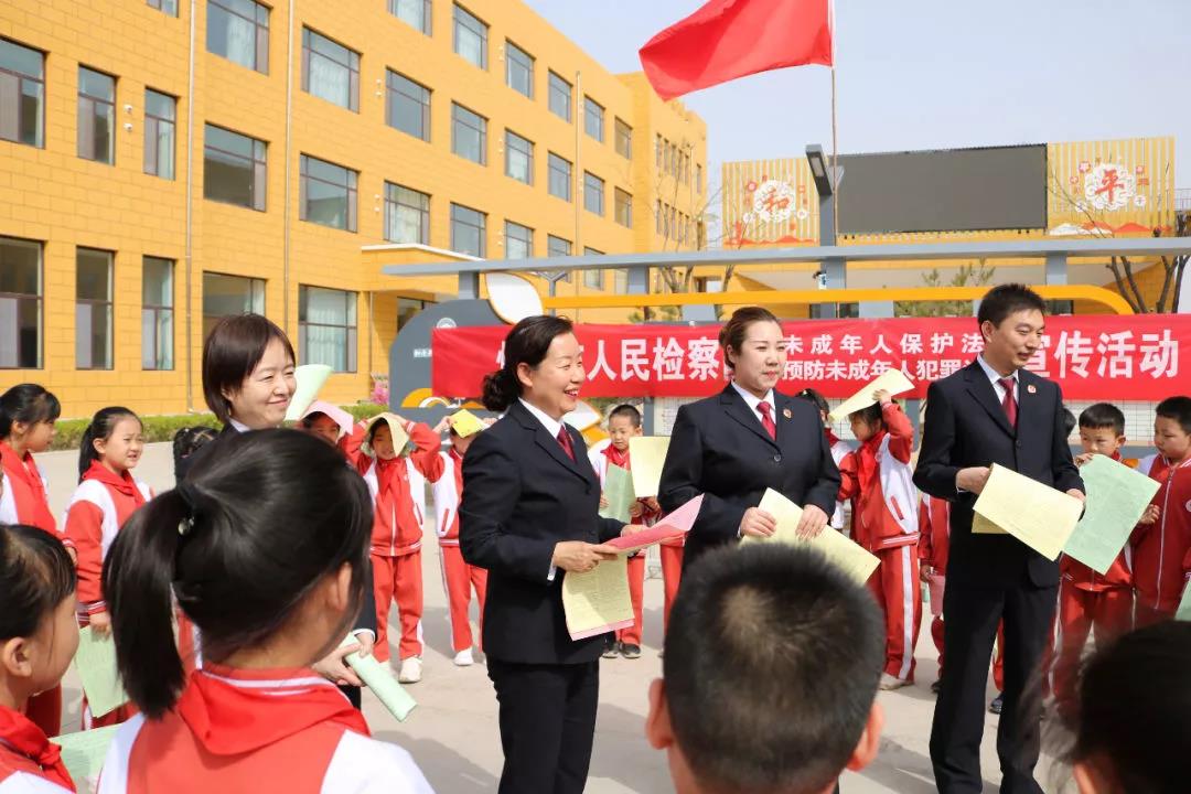 為了進一步學(xué)習(xí)貫徹新修訂的《未成年人保護法》、《預(yù)防未成年人犯罪法》,增強未成年人的法律意識、責(zé)任意識、自我保護意識,3月31日下午,忻州市人民檢察院走近忻州市和平小學(xué)開展了“兩法”宣傳進校園活動。市檢察院樊春梅副檢察長以及未檢部門全體成員參加了此次活動。