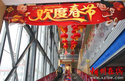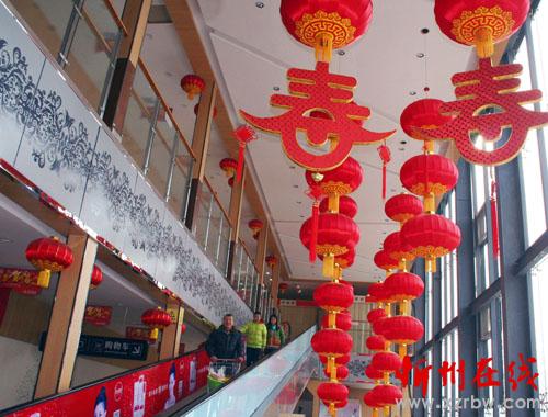 年味越來越濃,1月23日原平市商場里張燈結彩,大紅燈籠高高掛,一派喜慶景像,市民們在打扮一新的商場里,在喜慶氣氛中夠年貨迎新春。(趙月仁 攝)