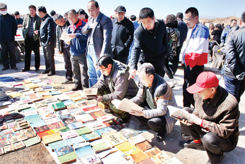 3月14日,原平市文化路集貿(mào)市場圖書飄香,市民們正在挑選自己喜愛的書籍。該市著力打造文化強(qiáng)市,處處彰顯文化氛圍。(趙春曉 攝)