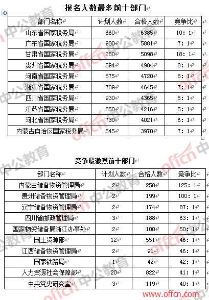 部門:報(bào)名人數(shù)前十均被國(guó)稅“拿下”