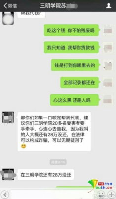 這中間有人催蘇某還款,被蘇某告知三明學(xué)院有20余人受騙,“大概還有28萬(wàn)沒(méi)還”。