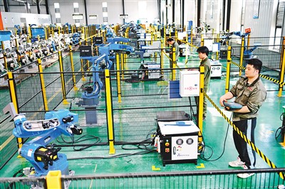 近年來,江西省贛州市加強青年技術人才技能培訓,促進適齡青年實現(xiàn)技能成才。圖為贛州市贛縣區(qū)的一家智能裝備制造企業(yè)內,幾名青年技工在加緊調試出口的工業(yè)機器人訂單產品。朱海鵬攝(人民視覺)