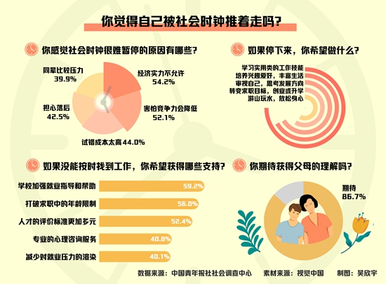 調(diào)查顯示,如果沒能按時找到工作,86.7%的受訪青年期待獲得父母的理解。