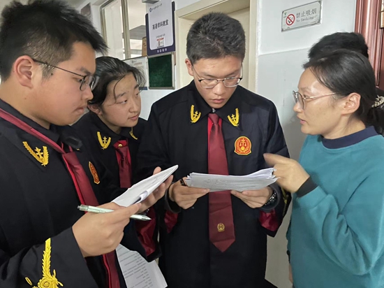 諶濤在自己授課的班級找了兩名“律師”,他們花一節(jié)自習(xí)課的時(shí)間,仔細(xì)研究了原告的“起訴狀”,完成“答辯狀”并提交給學(xué)生法庭。