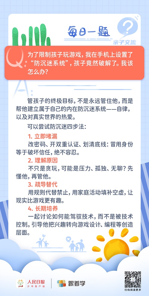 每日一題丨家長如何防止孩子繞過“防沉迷系統(tǒng)”訪問游戲?