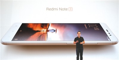 今年3月3日,在印度首都新德里,小米科技推出專門針對印度市場的紅米Note 3手機(jī)。圖為小米科技全球副總裁雨果·巴拉在發(fā)布會(huì)上介紹紅米Note 3手機(jī)。