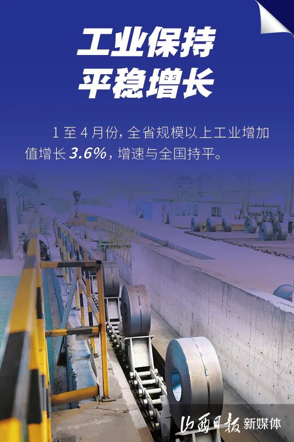5月19日,山西省統(tǒng)計局公布1至4月份,全省經(jīng)濟(jì)運行情況:1至4月份,全省工業(yè)生產(chǎn)平穩(wěn)增長,消費市場加速回暖,就業(yè)物價總體穩(wěn)定,經(jīng)濟(jì)運行延續(xù)恢復(fù)向好態(tài)勢。一組海報,了解1至4月山西經(jīng)濟(jì)數(shù)據(jù)。
