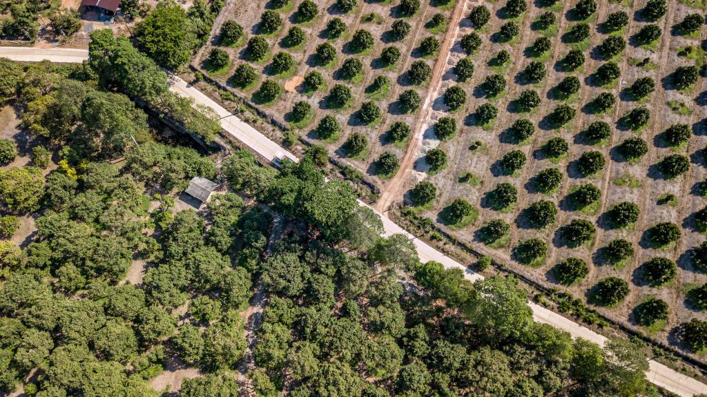 這是4月26日在泰國尖竹汶府拍攝的榴蓮園(無人機(jī)照片)。新華社記者王騰攝