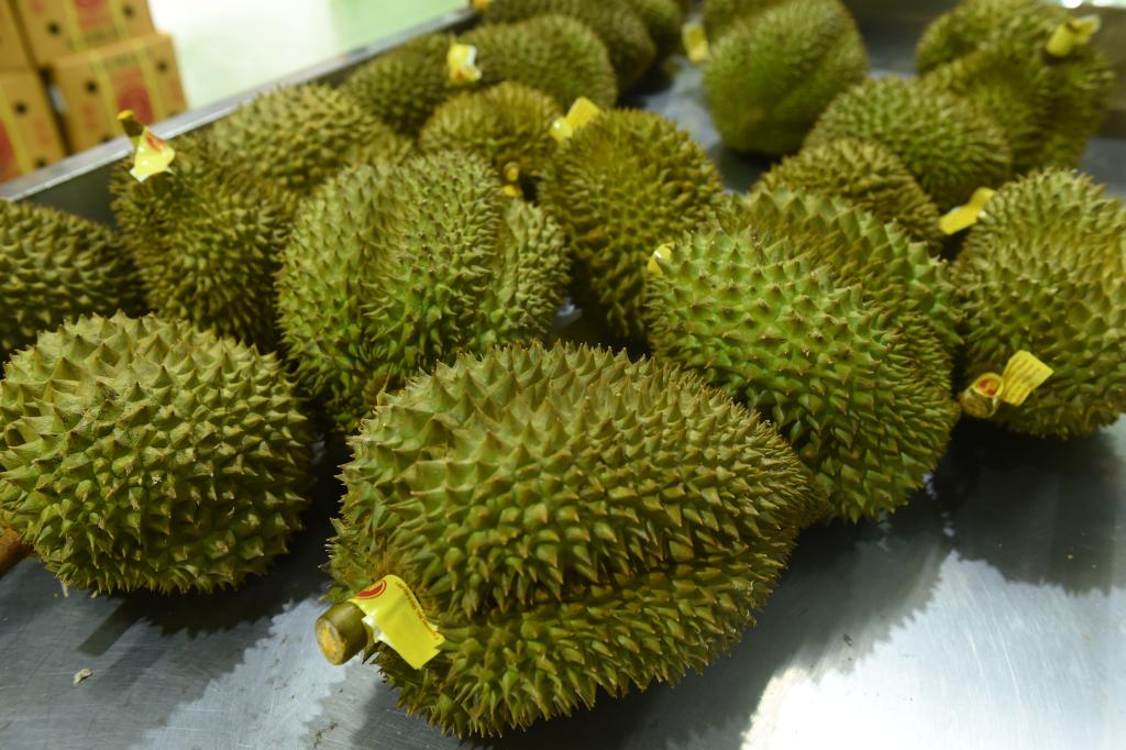 沙西通果園的榴蓮被采摘后,很快被運(yùn)到附近一家加工廠。這里,工人們忙碌地對新鮮榴蓮進(jìn)行分揀、稱重、打包、裝車。