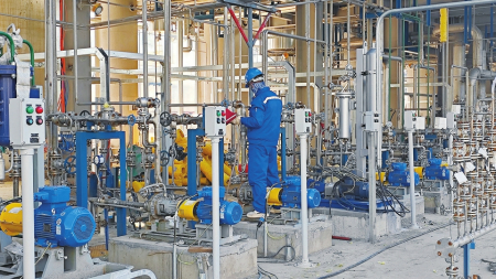 “安全生產(chǎn)天數(shù)1301天,儀表調(diào)試天數(shù)78天。”走進(jìn)調(diào)度指揮中心,大屏幕上實(shí)時(shí)顯示著建設(shè)進(jìn)度和施工現(xiàn)場(chǎng)實(shí)時(shí)畫面,同德科創(chuàng)材料有限公司負(fù)責(zé)人樊尚斌信心十足地說:“歷時(shí)三年多的建設(shè),目前甲醇制氫、空壓制氮、導(dǎo)熱油爐等主項(xiàng)設(shè)備全部安裝完畢,已全面進(jìn)入管道安裝收尾和試壓高峰階段,最近爭(zhēng)分奪秒搶抓工期,確保按期完工。”