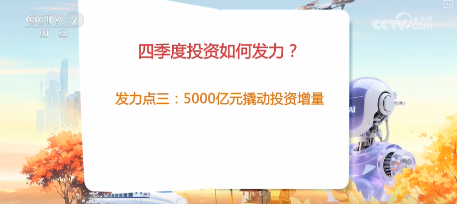 央視網(wǎng)消息:投資是拉動經(jīng)濟增長的“三駕馬車”之一。四季度,國內投資發(fā)力的重點在哪里,專家進行了權威解讀。