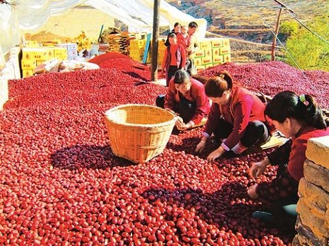 近年來,臨縣縣委、縣政府大力實施紅棗品牌發(fā)展戰(zhàn)略,不斷提升加工轉(zhuǎn)化能力,將棗樹確定為“縣樹”,設(shè)立紅棗產(chǎn)業(yè)局,創(chuàng)立“臨縣紅棗”公共品牌,出臺了支持紅棗產(chǎn)業(yè)發(fā)展的15項優(yōu)惠政策,初步形成了“生產(chǎn)有基地、加工有龍頭、銷售有網(wǎng)絡(luò)、政策有傾斜”的紅棗產(chǎn)業(yè)發(fā)展格局。通過書記、縣長為紅棗代言,舉辦紅棗旅游文化節(jié)、紅棗電商論壇,參加國內(nèi)各種博覽會、交易會等推介活動,擴大了臨縣紅棗品牌影響力。目前,臨縣紅棗年產(chǎn)值突破6億元,占全縣農(nóng)業(yè)總產(chǎn)值的42%。棗區(qū)農(nóng)民紅棗收入占人均純收入的70%以上,紅棗產(chǎn)業(yè)已經(jīng)成為全縣農(nóng)民增收的一項主導(dǎo)產(chǎn)業(yè)。