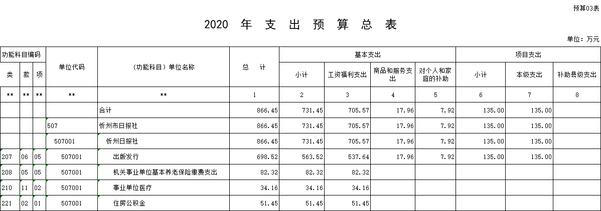 忻州日報(bào)社2020年收入預(yù)算866.45萬元,比2019年增加15.62萬元。