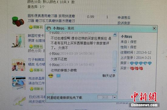 資料圖:網(wǎng)購買家被賣家辱罵。黃洋洋 攝 圖片來源:CFP視覺中國