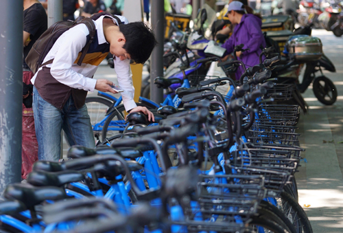 資料圖片:一位市民準備利用共享單車出行。新華社記者 季春鵬 攝