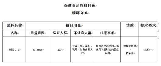 2019年3月,國家市場監(jiān)管總局發(fā)布《關(guān)于公開征求輔酶Q10等5種保健食品原料目錄意見的公告》,將輔酶Q10功效進一步收窄為兩點:增強免疫力和抗氧化
