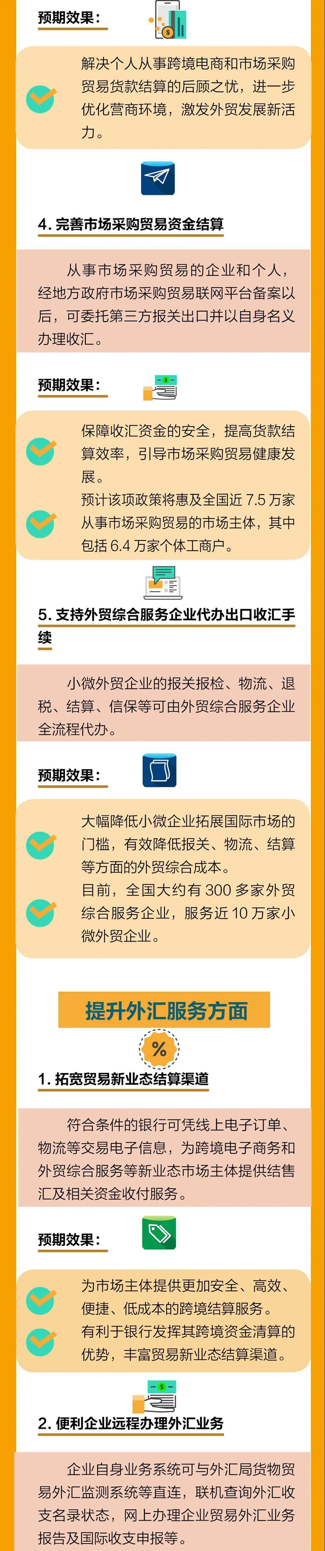 國(guó)家外匯管理局新聞發(fā)言人、總經(jīng)濟(jì)師王春英表示,《通知》優(yōu)化了貿(mào)易新業(yè)態(tài)外匯結(jié)算模式,擴(kuò)大賬戶(hù)收支范圍,推動(dòng)更多業(yè)務(wù)網(wǎng)上辦理,在降低市場(chǎng)主體綜合成本的同時(shí),提升跨境結(jié)算效率。